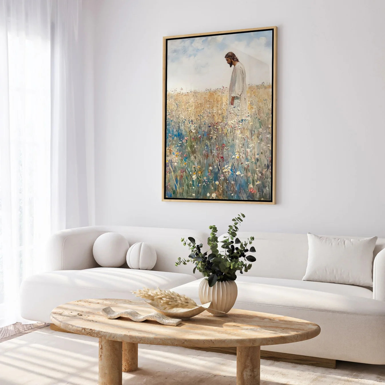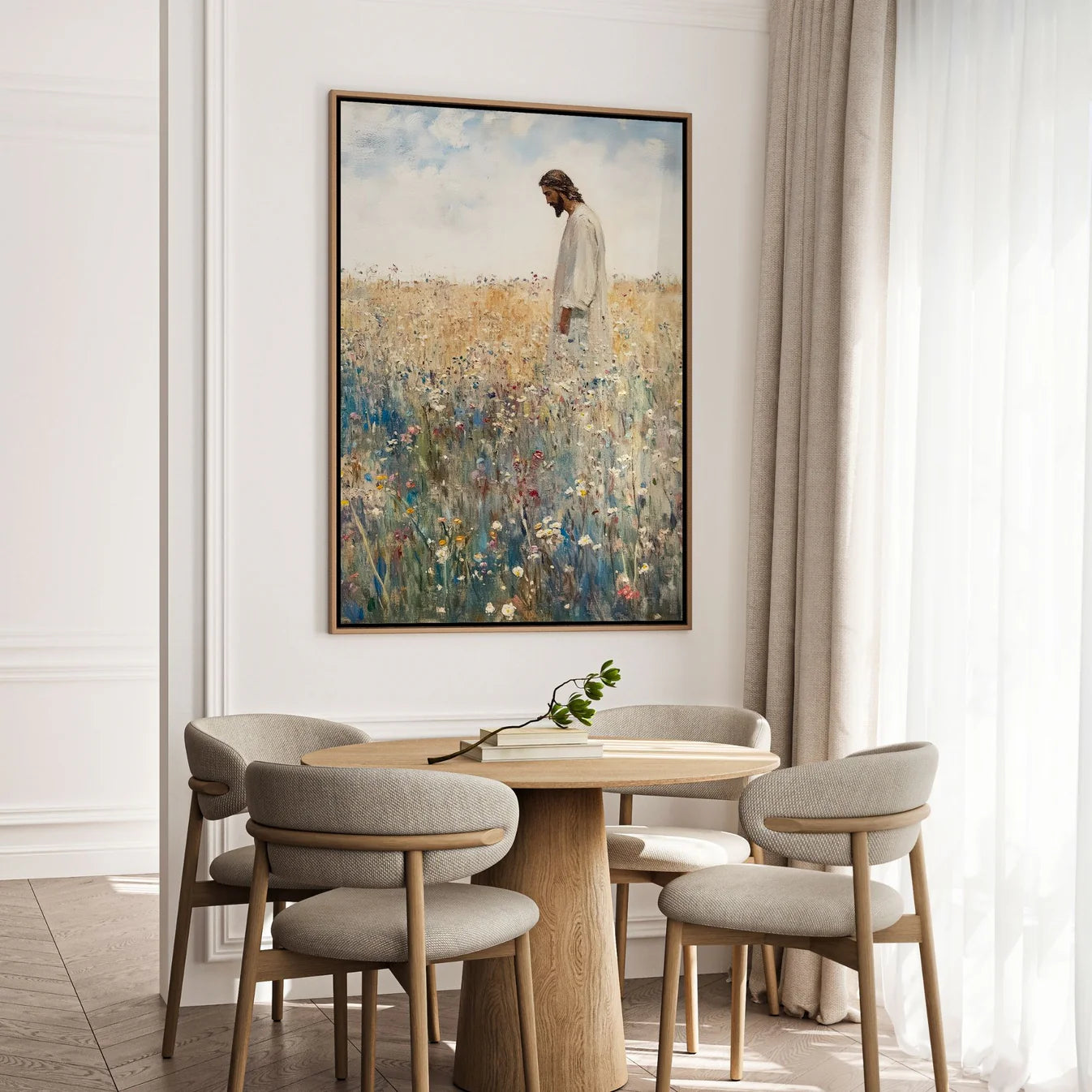This stunning canvas captures the heart of the Gospel—Jesus, standing alone in the open field, leaving behind the 99 to search for the one who is lost. A powerful reminder that His love is personal, relentless, and unconditional—no one is ever forgotten, no one is ever too far gone. Let this artwork bring peace and reassurance into your home, reminding you that you are seen, pursued, and deeply loved by the Good Shepherd.