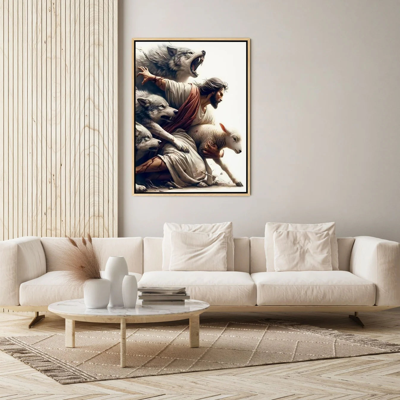 Inspired by John 10:11, this artwork is a powerful reminder that He is your protector, your refuge, and your unwavering defender. No matter what comes against you, Jesus holds you close, guarding you in His embrace. Hang this piece as a daily reassurance that you are safe in His arms, always loved, always watched over.