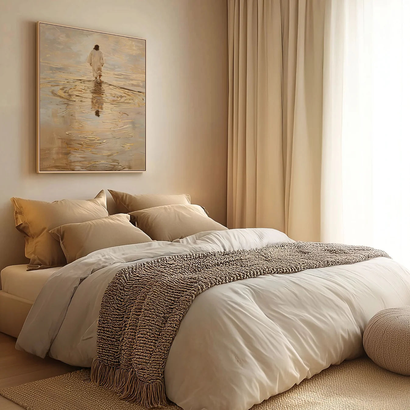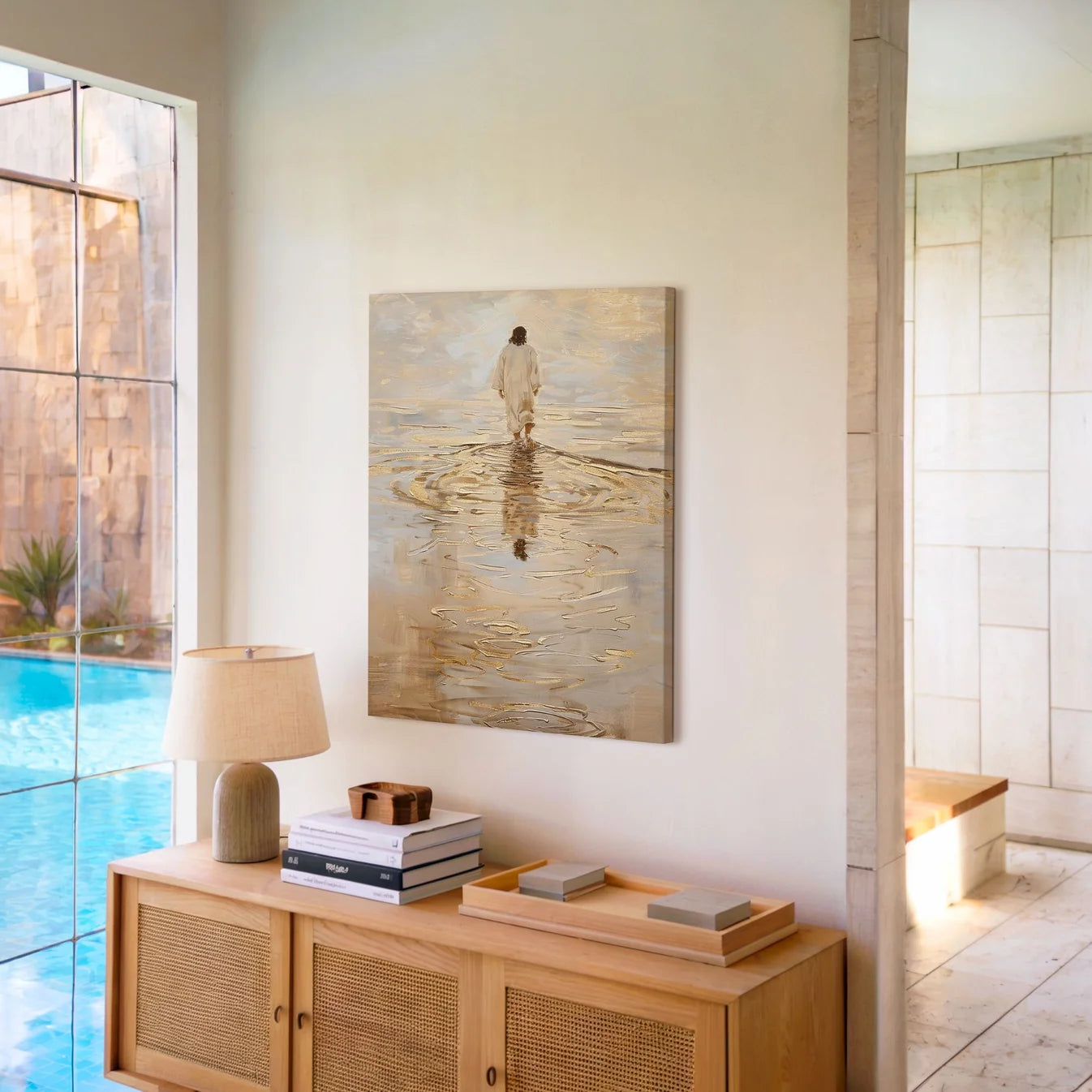 Inspired by Matthew 14:22-33, this artwork is a reminder that faith is trusting even when you feel unsteady. No matter the fear or uncertainty, Jesus is always near, hand outstretched, ready to lift you up. Hang this piece as a daily encouragement to keep your faith strong—because with Him, you will never fall.