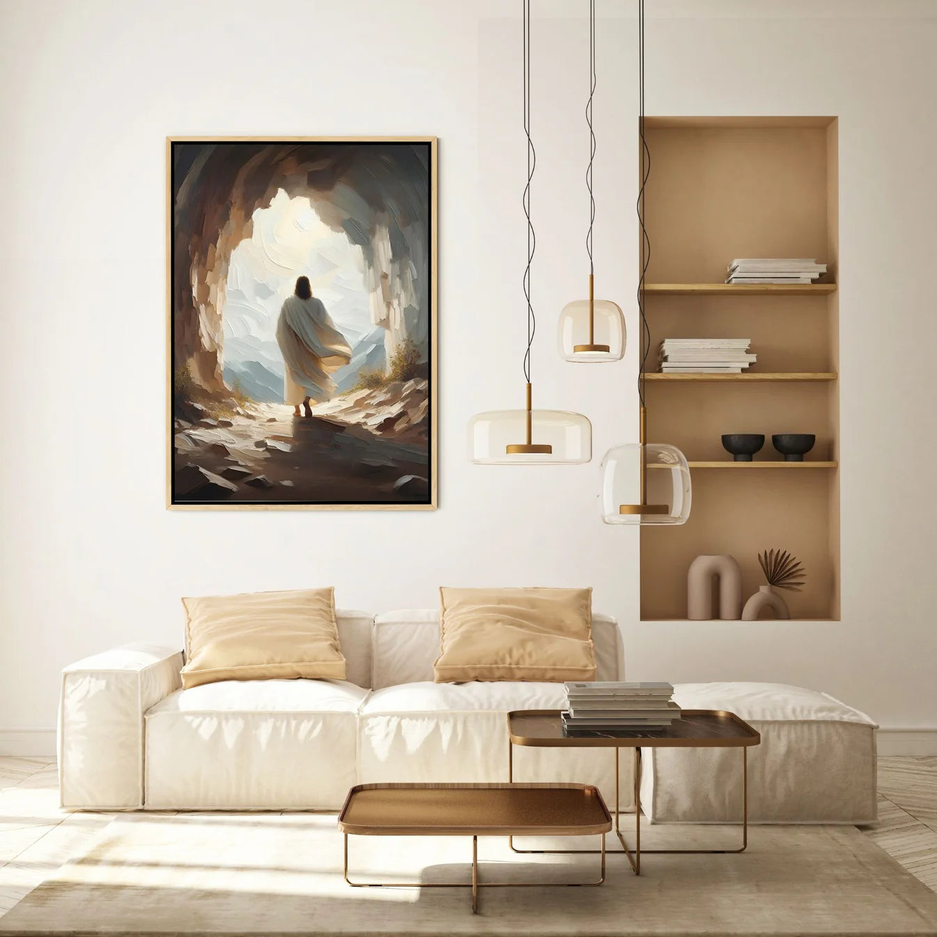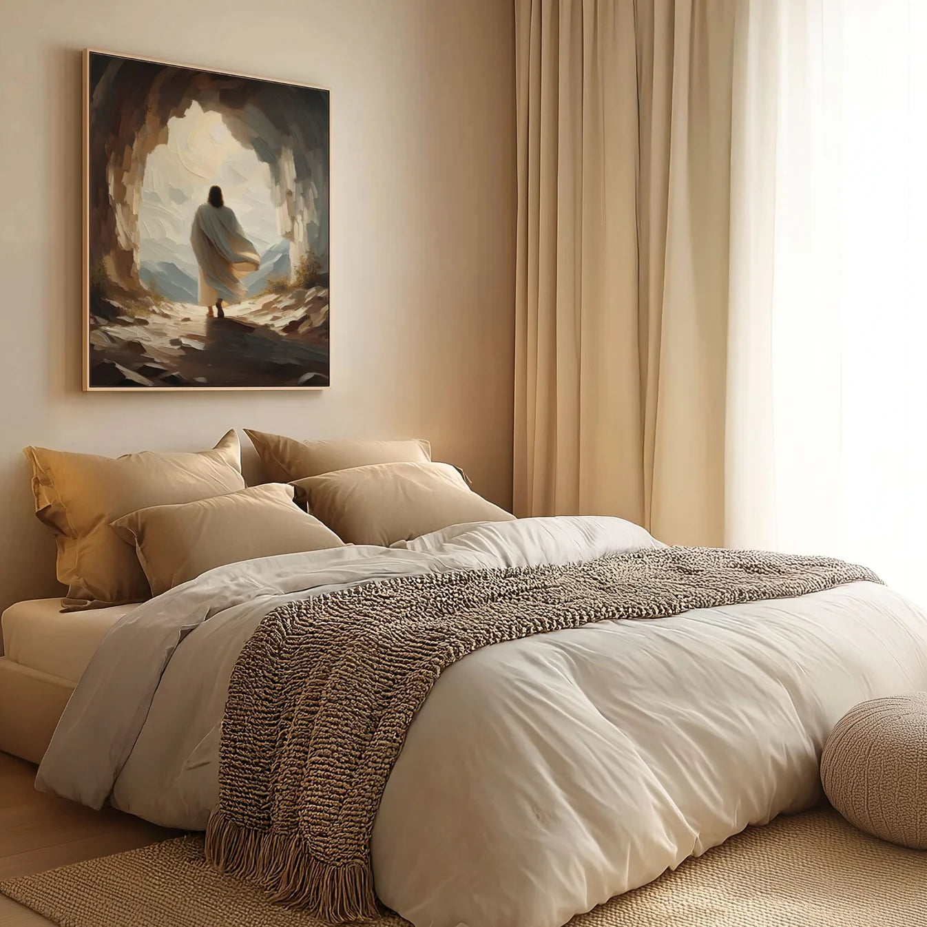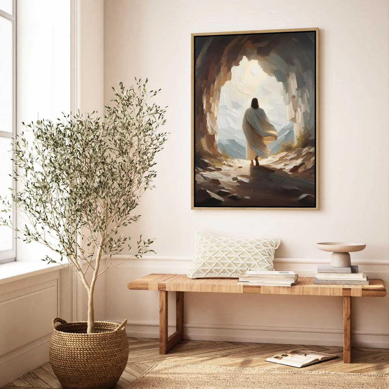 Inspired by the resurrection of Jesus, this powerful artwork captures the moment hope was reborn. The stone is rolled away, the grave is empty, and light breaks through the darkness—because death was not the end. It’s a stunning reminder that no matter how broken or buried something may feel, with Jesus, new life is always possible. Let this piece fill your home with the truth of the Gospel: He rose, He reigns, and because of Him, we have victory.